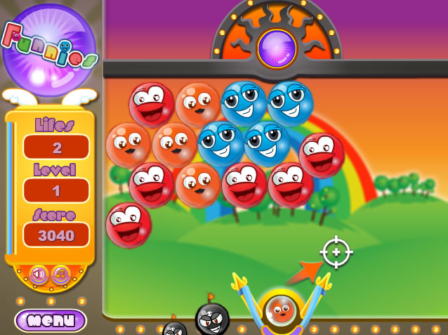 Try to remove all Funnies from the game by shooting Funnies up and creating groups of 3 or more.