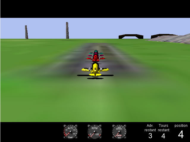 Complete the race by turning all laps round the pylons. You can shoot your oponents if you are able to.