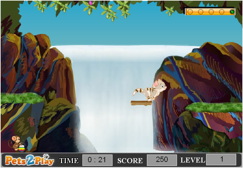 Help our cute little kitty to cross the waterfalls ad reach the other point with the help of the woodlog. Do not miss any kitty.