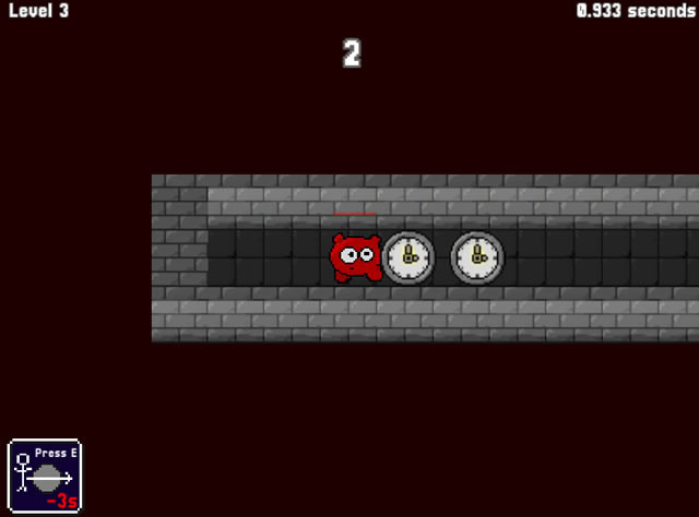 You have three seconds to reach the end of the levels. Fortunately, you can grab small clock to reload your timer with 3 more seconds. Can you reach the exit of each level in order to get more time and to complete the game? Have fun!